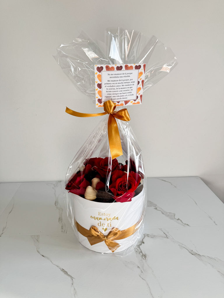 Todo en una sola BOX: Rosas Frescas + Fresas bañadas de chocolate + frambuesas