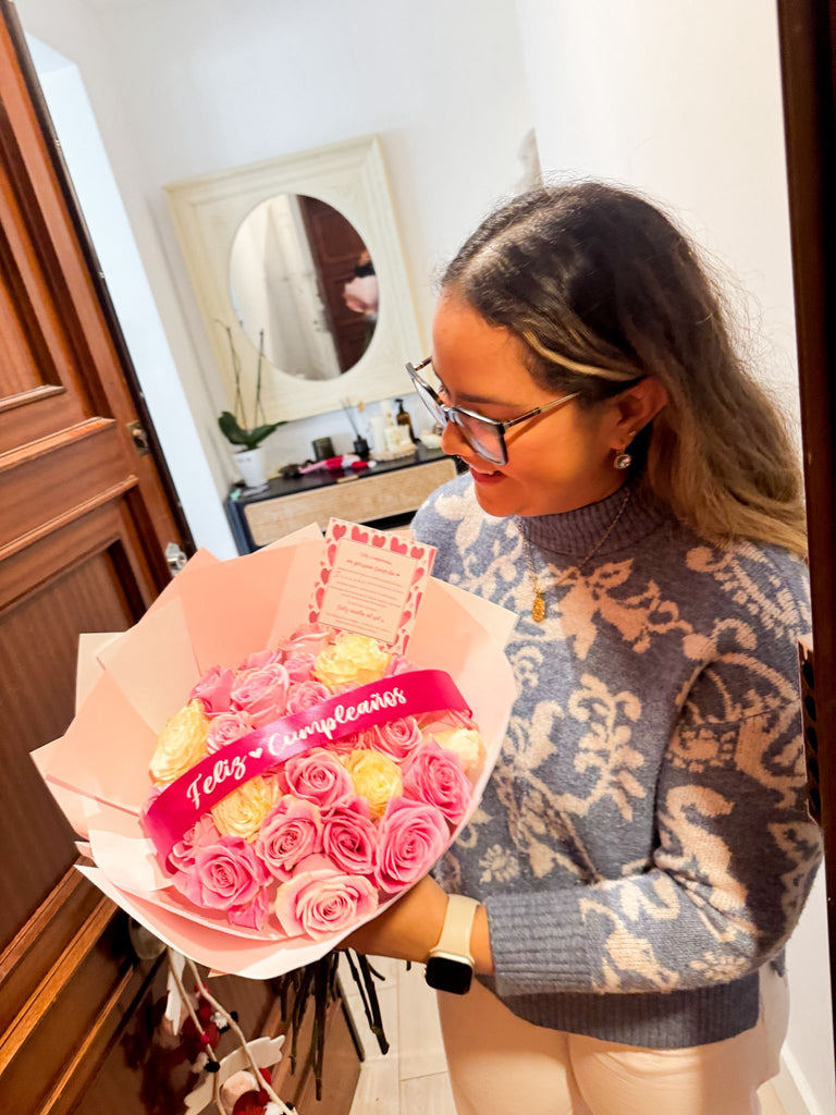 Ramo de 25 rosas con cinta personalizada